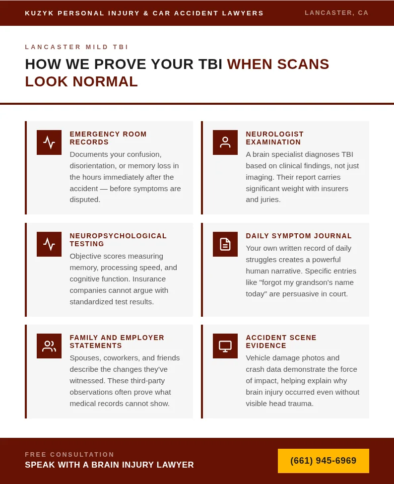 Building a strong mild TBI case requires multiple types of evidence. Unlike a broken bone that shows up on X-rays, brain injuries need proof from many different sources.